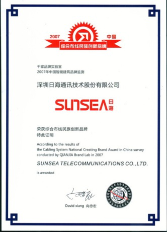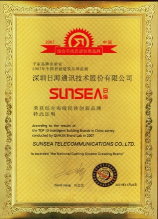 2007年11月29日~30日,zoty中欧公司智能综合布线受邀前往上海光大会展中心酒店,参加由千家网筹办的“2007年第八届中国国际建筑智能化峰会暨颁奖典礼”,获得了“布线民族创新品牌”特别奖项。